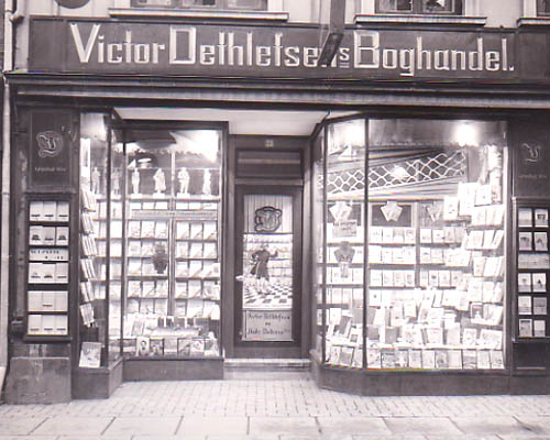 2.10.1856 etableres af Martin Bernhardt Møller (1797-1875) i Nørregade 12, B. Møller Sortimentsboghandel, papir-, musik- og kunsthandel samt et lejebibliotek, som han havde købt af Md. Qvist.